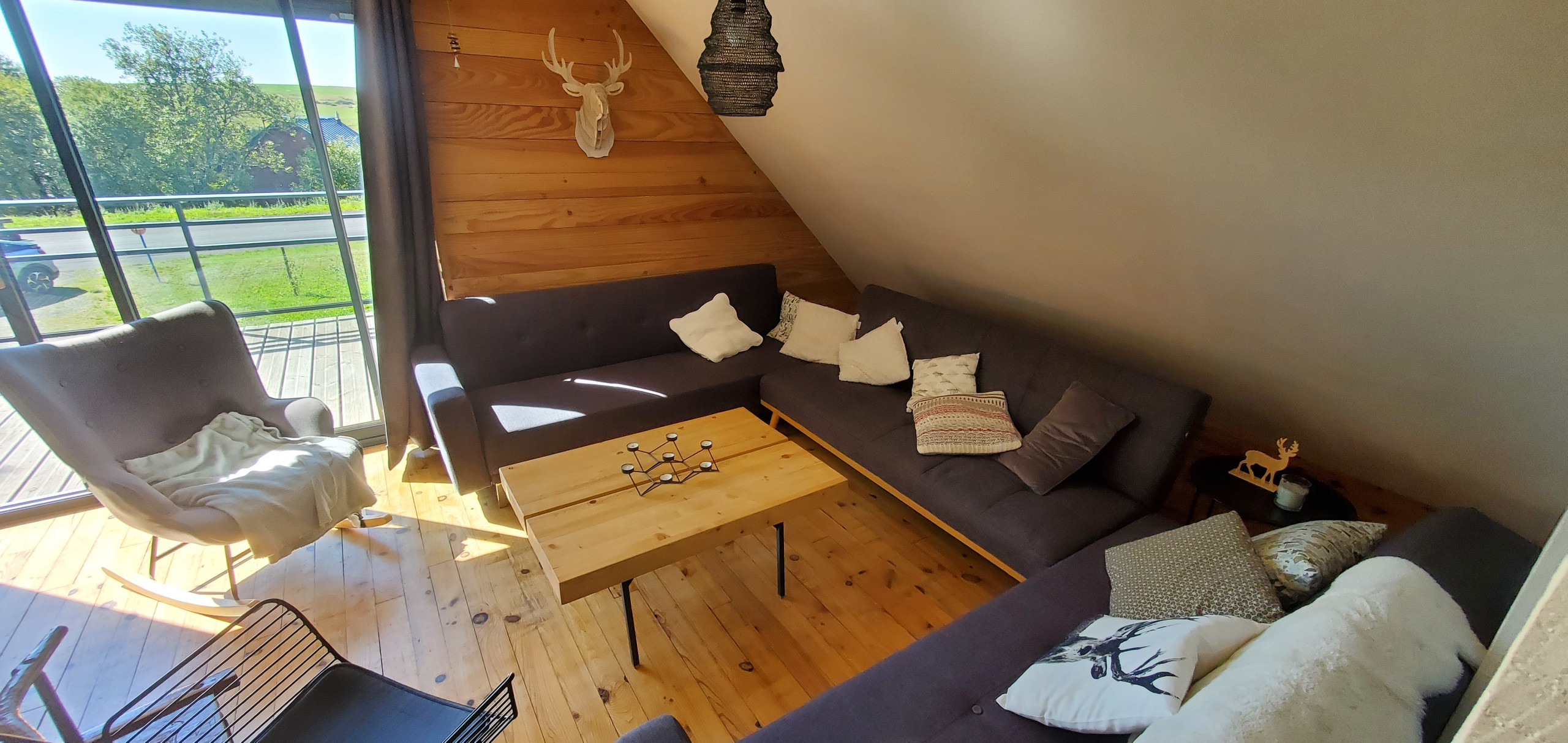 À l’extérieur, profitez d’une terrasse avec vue imprenable sur les montagnes, idéale pour un moment de détente en plein air.